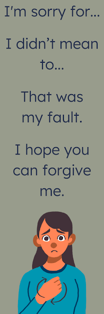 How to respond to apologies too. Because your students need to know how to accept an apology gracefully (“Don’t worry about it!”) or explain why they’re still upset. Both sides of the conversation matter.