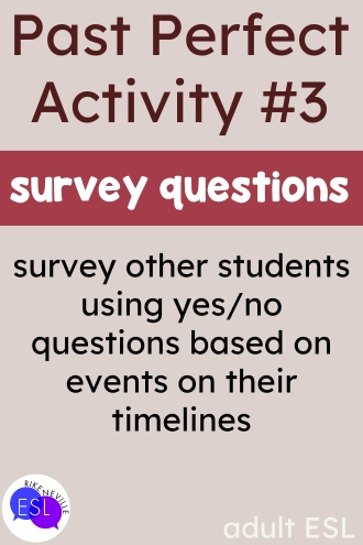Once timelines are complete, students create past perfect yes/no questions based on events: