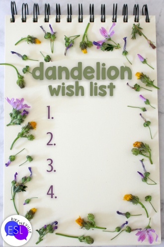 I started calling this the Dandelion Wish List after a student asked if “bucket list” meant things to do before dying. That got dark. Dandelion wishes are lighter and more spring-appropriate anyway.