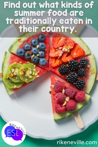 Whether you get your students to do a presentation on a summertime food from back home, a demonstration on a recipe they’ve just learned, or have them do a how-to writing assignment, thoughts of food might be the perfect distraction from the summer heat.