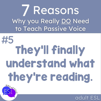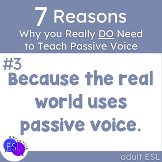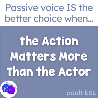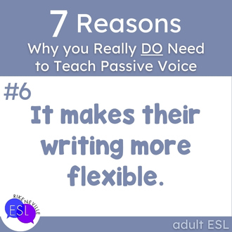 Native speakers do this instinctively. Your ESL students will too, once they get a handle on it. Students who understand passive voice can make strategic choices in their writing AND their speaking. They can adapt to different contexts and audiences. They can write the kind of professional emails that don’t accidentally start workplace drama and speak up during meetings without creating insta-enemies.