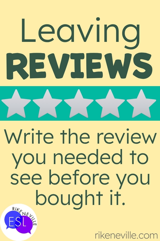 Oooh, and be specific in the written part while you’re at it. You know how useless it is to scroll through five reviews that just say “Great resource!” Don’t be that review. Tell people what level your students were, whether it matched the description/preview, whether it needed adapting, whether the prep time was worth it, etc. That information is absolutely invaluable to someone trying to decide if this is worth their money.
